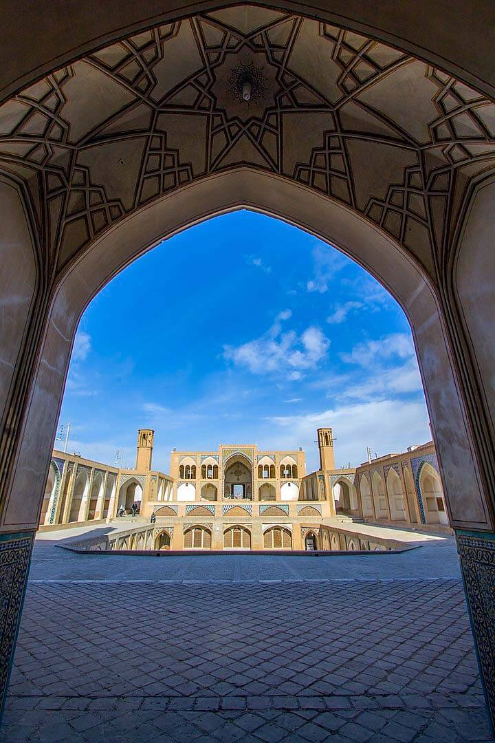 It has two levels, the mosque on the first floor and the madrasa below. The madrasa is a Koranic school that trains mullahs. It’s recommended to visit, a must-see in Kashan.