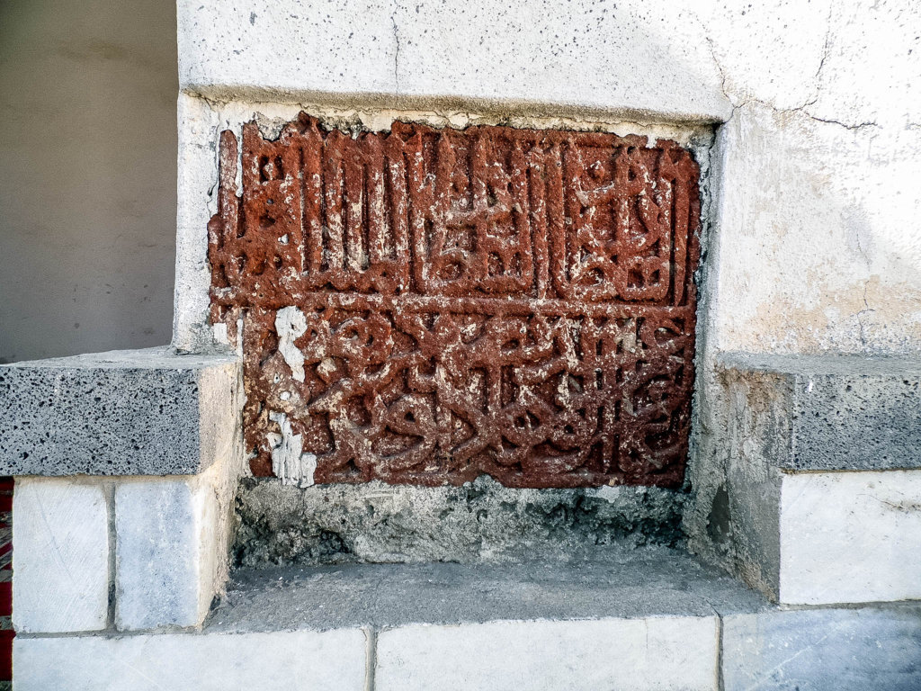 The minaret occupies a part of the southwestern corner and consists of a cylindrical lower part topped by an octagonal shape above which a hexagon revolves and crowns the minaret from the top of the dome.