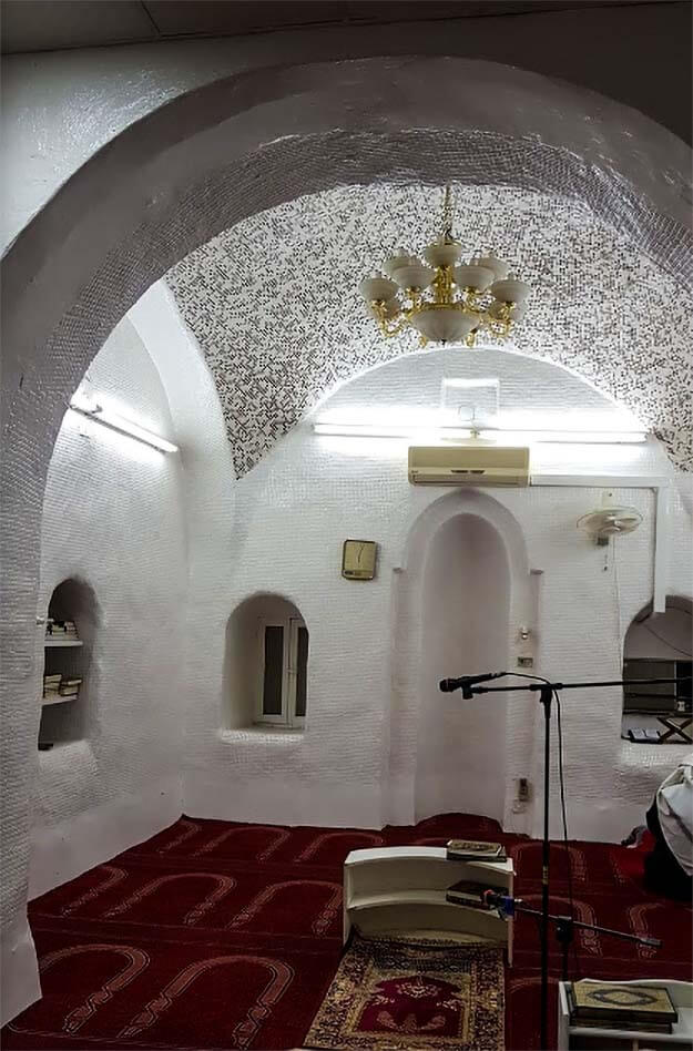 The mosque is situated on top of Mount Dzubab (Dzubab means “flies”), and this area is not far from Mount Sala’ on the south, Al-‘Uyun street on the left hand side, and Az-Zugaibi gas station between Al-‘Uyun street and Sulthanah street on the behind.