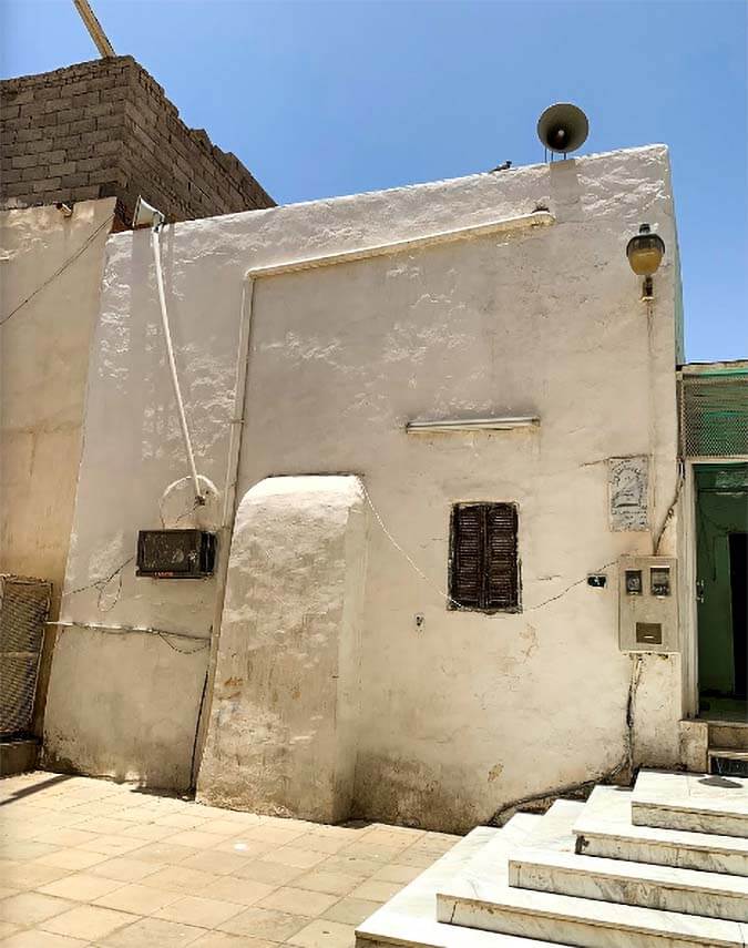 It is a beautiful small Mosque up on a tiny hill, hidden between other buildings; you have to go up by stairs. Located in between Abu Bakr Siddique (رضي الله عنه) and Usman bin Affaan (رضي الله عنه) road on right hand side.