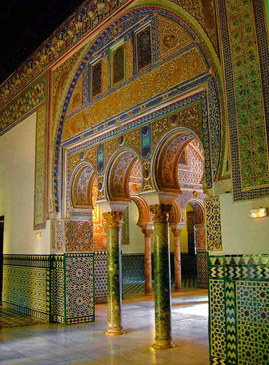 King Pedro the Cruel (who earmt the name for murdering all the half-siblings standing between him and the throne) hired Muslim builders and craftsmen from the Nasrid court of Granada to create the finest examples of Mudéjar art in Spain.