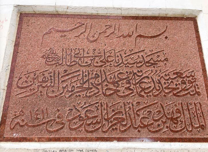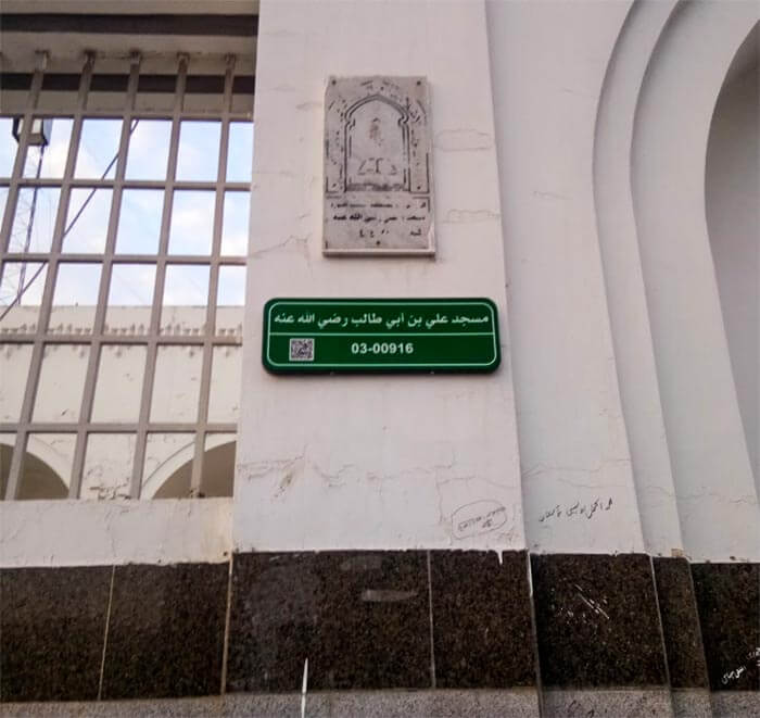 Masjid al-Imam Ali ibn Talib is located in front of the door 7 of the Masjid al-Nabawi mosque.