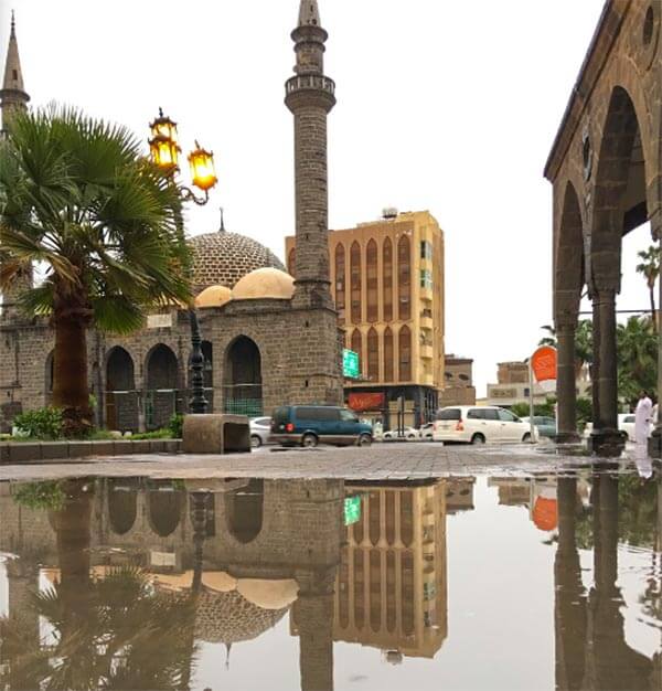 This small mosque has three domes, and it is 56 meters square meters wide. It has elements of Umayyad architecture style, and it was restored at the time of the king Fahd bin Abdul Aziz rule.