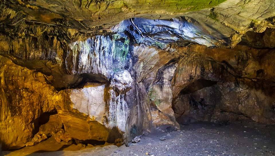 The cave is frequented by an enormous amount of visitors, a result is that the limestone in the cave is polished by the touch of many hands and feet. It looks almost like marble.