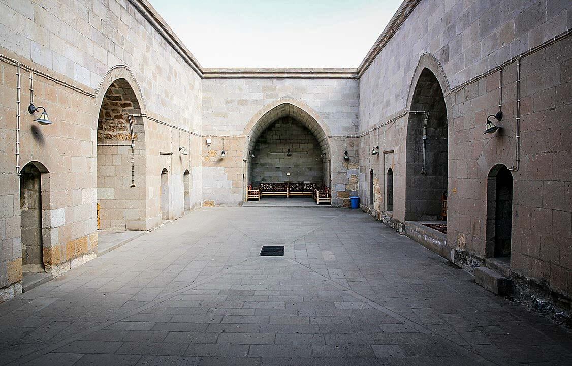 Later additions are also imposing. For example, the geometric ornaments on the gate which was built during the Seljuks cast shadows of a praying man, a praying woman and a dervish in during salah times.