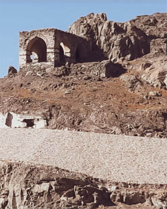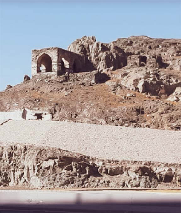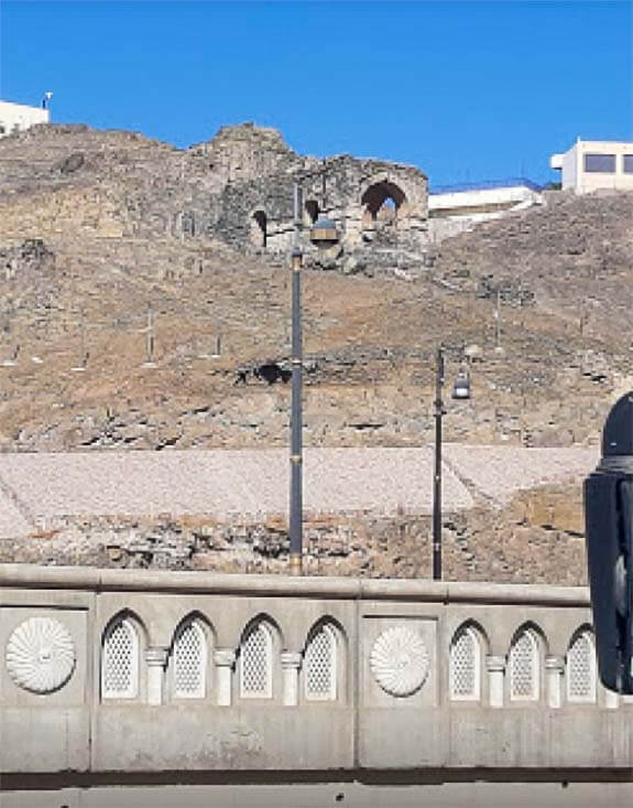 These are the ruins of Bani Ghifar Mosque, which commemorates the site where the Prophet ﷺ had prayed. It is on the south-eastern side of Mount Sela.