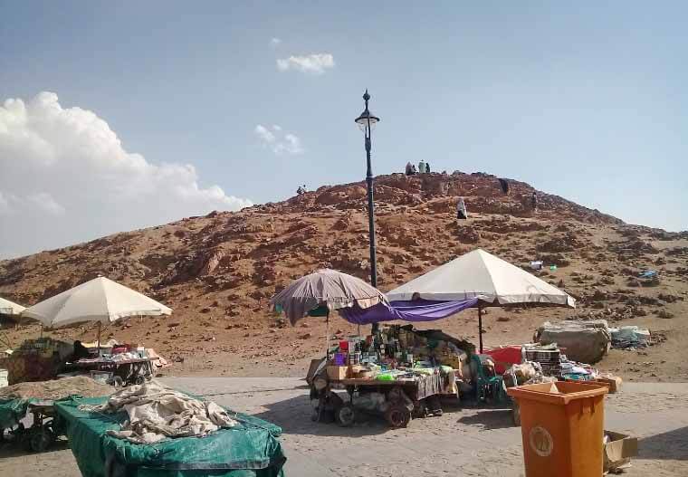 Jabal al-Rumah (جبل الرماة), the peak or hill of the archers, Before the battle, Hz. Prophet Muhammad ﷺ had assigned 50 archers on a nearby rocky hill at the west side of the Muslim camp.