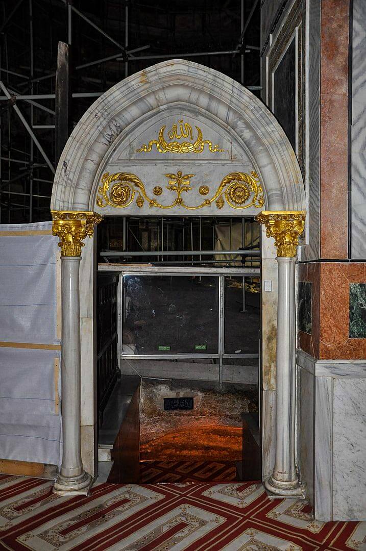 The mihrab dedicated to Hz. Dawud عليه اسلام, is located in the southern corner of the chamber. It is a trefoil arch supported by miniature marble twisted-rope columns.
