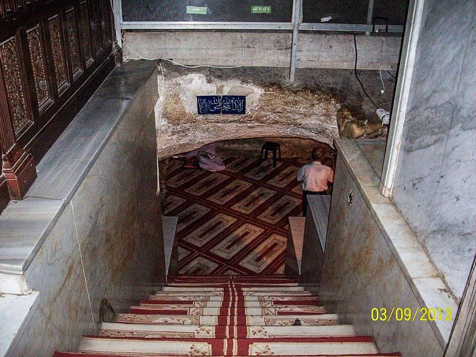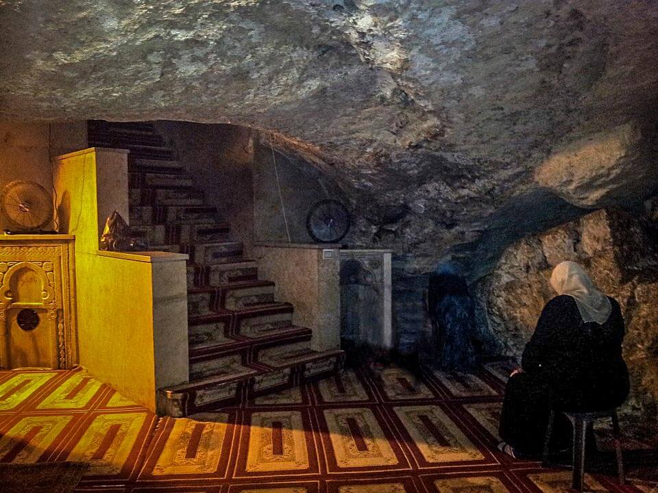 The entrance to the cave is at the southeast angle of the Foundation Stone, beside the southeast pier of the Dome of the Rock shrine.