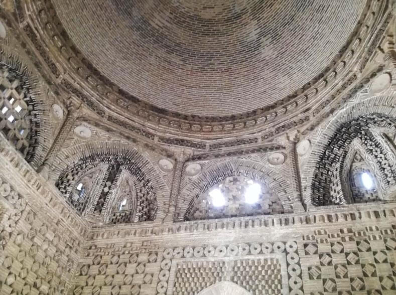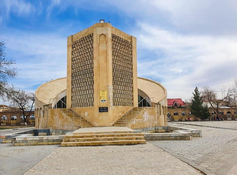 Chashma-Ayub Mausoleum is in the middle of a small, ancient cemetery.