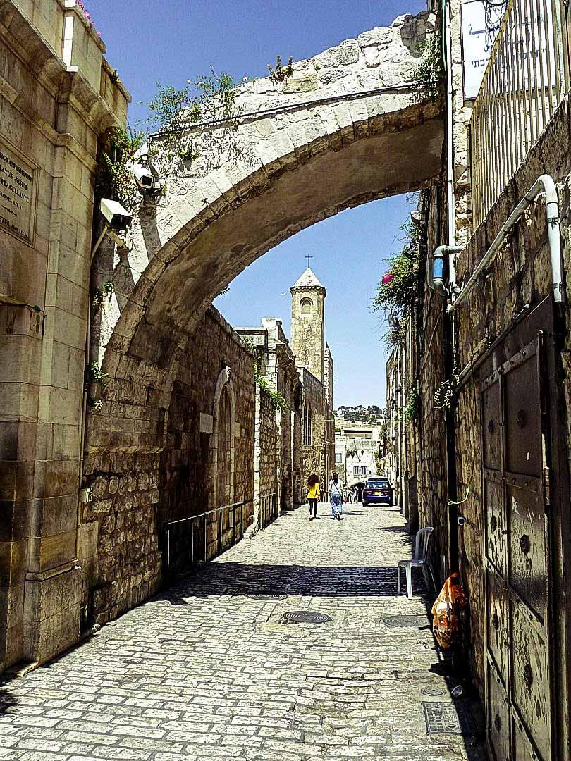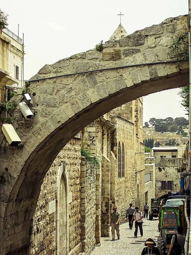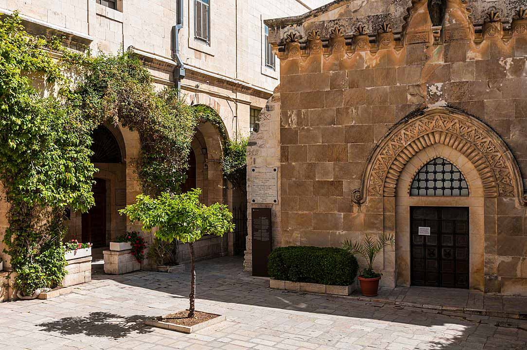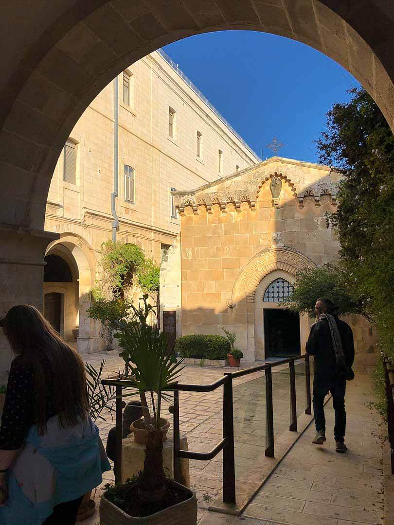 The monastery stands at the traditional Second Station of the Cross on the Via Dolorosa.
