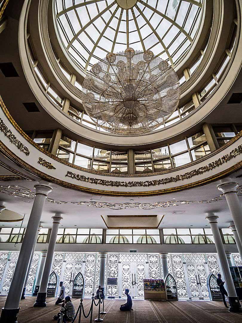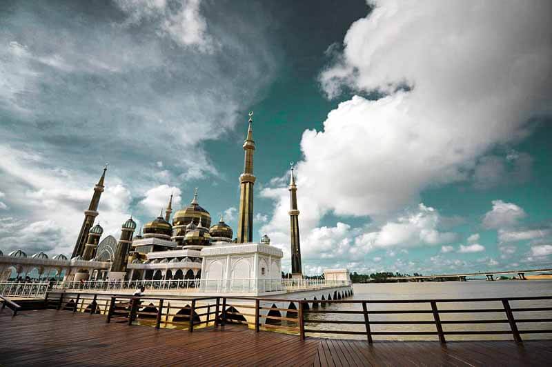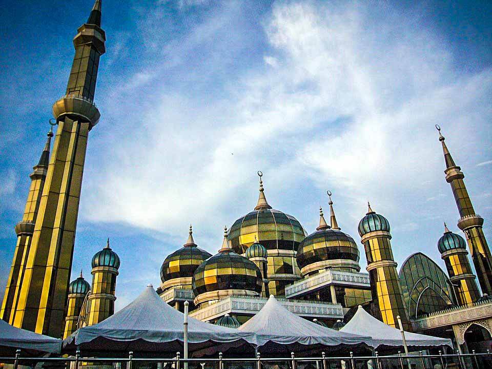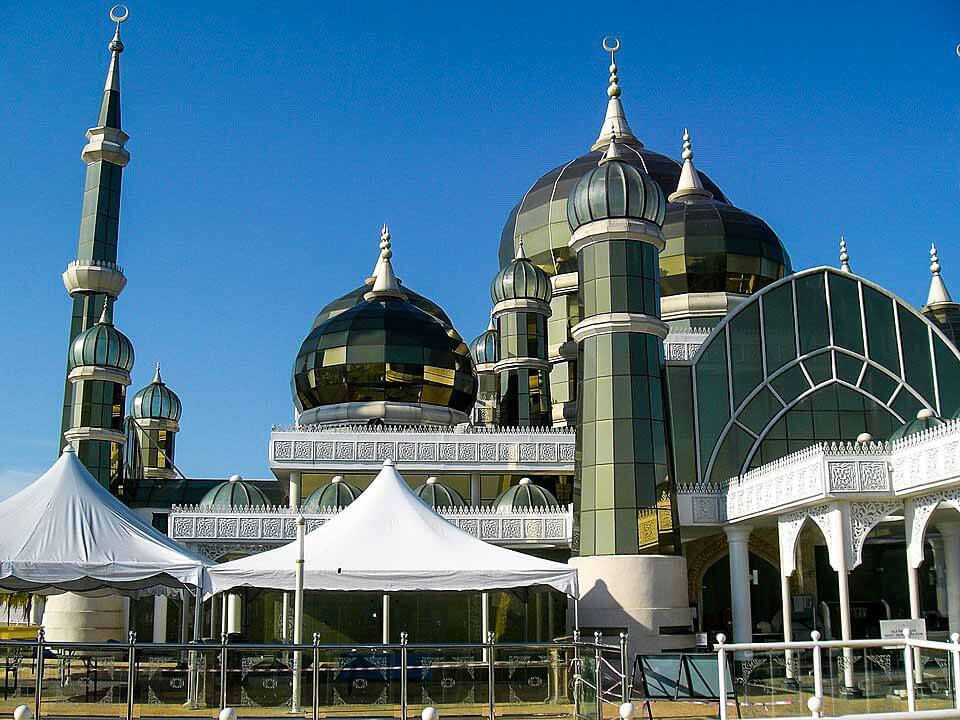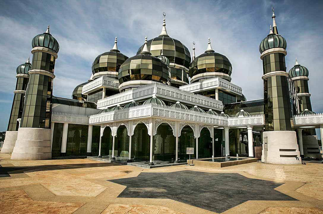 A grand structure made of steel, glass and crystal, the mosque is located at the Islamic Heritage Park on the island of Wan Man.