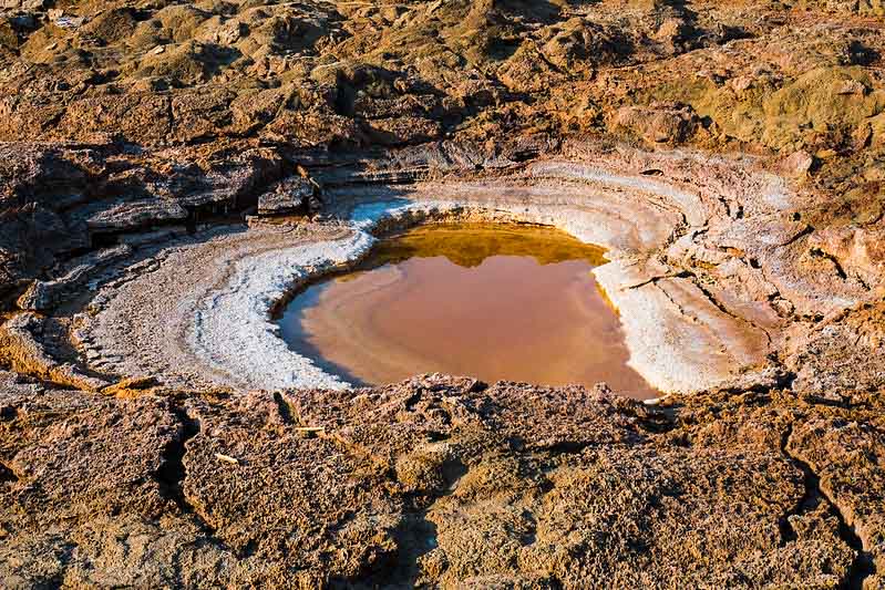 This decrease has allowed the penetration of fresh ground water into the underground layer, which dissolved the salt layer and created sinkholes. Presently there are over 5000 sinkholes spread across the west bank of the Dead Sea, some of which are filled with water originating from rainfall, flash floods and spring water.