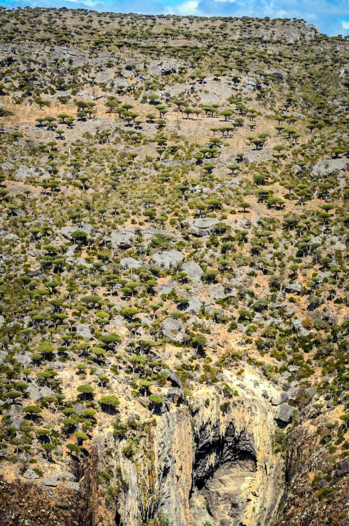 The forest in Diksam is the last Dragon’s Blood woodland. Nowhere else in the world can one find Dragon’s Blood Trees in such densities as growing here. There are areas (often right next to canyons) that are thick with dragon blood trees; others are sweeping plains of limestone. It is a great spot to have a picnic in the shade of one of the trees, so if you can go for it.