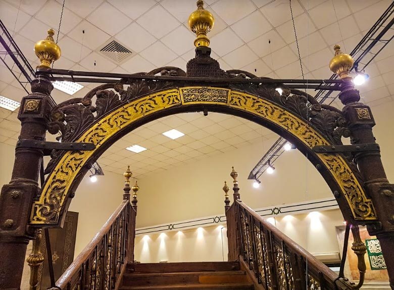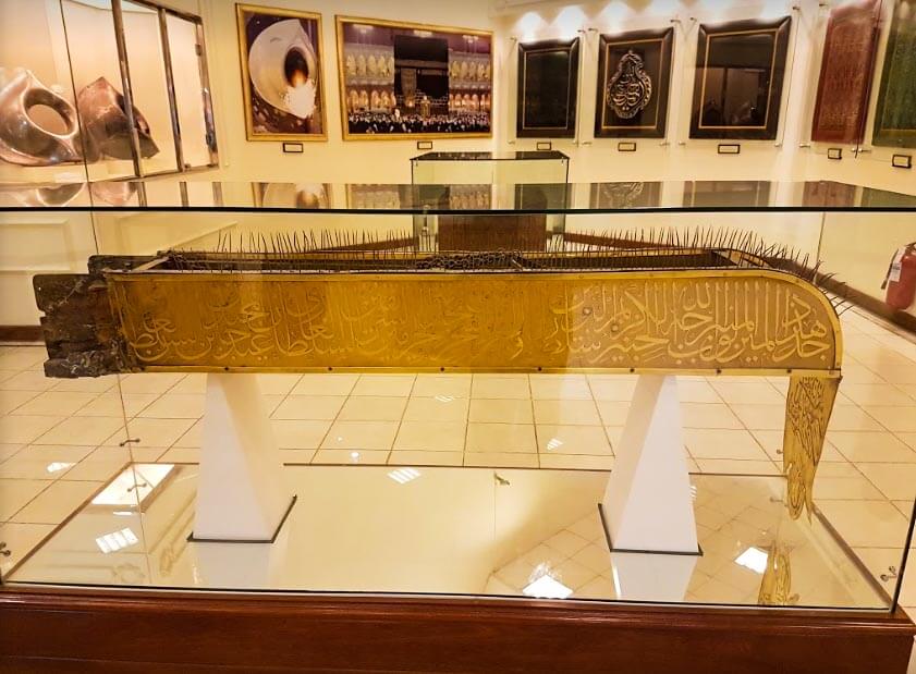 A teak-wood stair case, used to enter Kaba, is placed near the main entrance to the museum complex. The floor of Kabah and the entrance is about 2.2 meters (7.2 feet) higher than the Mataf area, consequently a staircase is needed to enter the sacred shrine. Over the centuries several of these were built by Muslim rulers or other prominent Muslims to be used in Masjid al-Haram. This staircase dates back to the reigh of Ottoman Sultan Mahmud II.