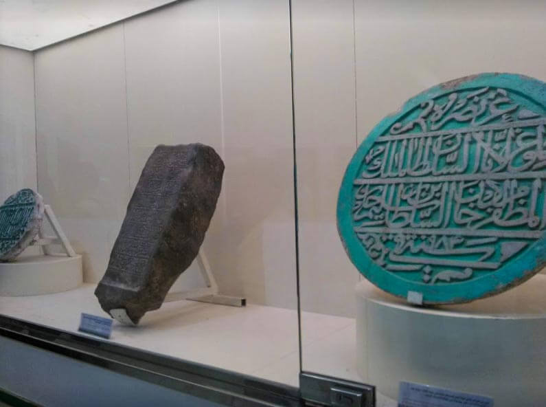 Six marble tiles (inspect) on which are engraved the word Allah the name of the Prophet Muhammad and the names of the Four Caliphs