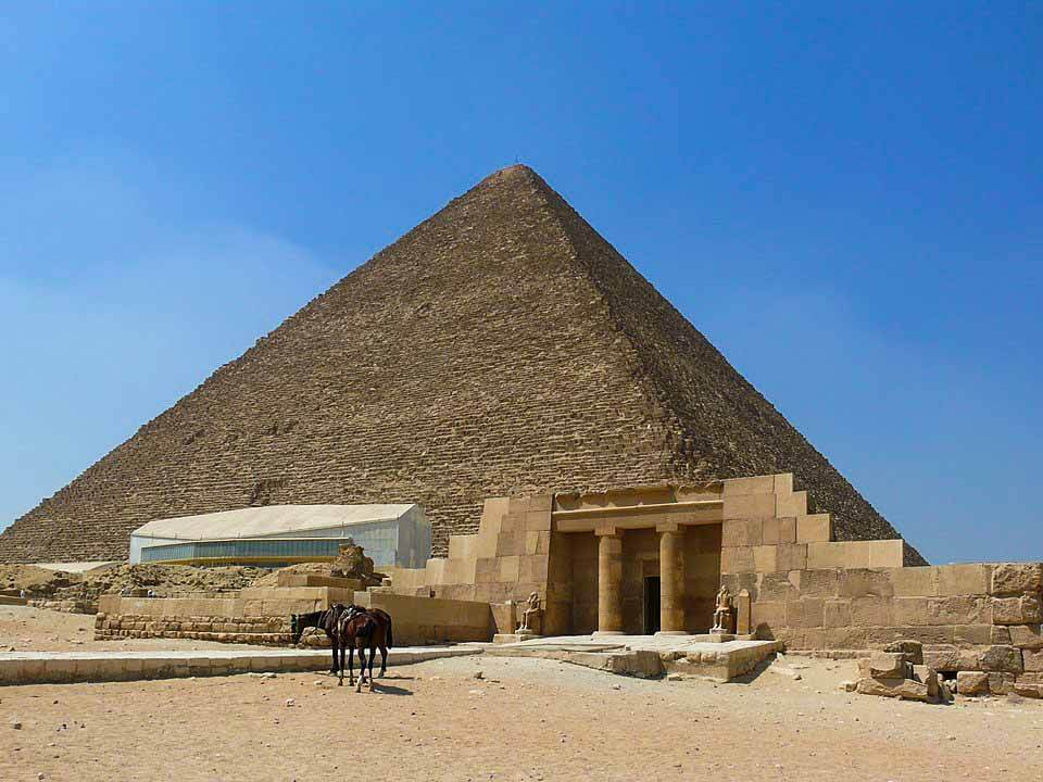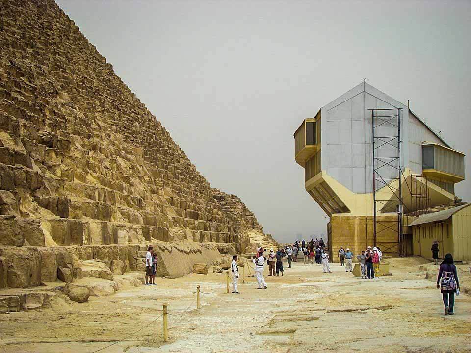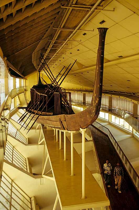 There are 5 long pits carved into the bedrock around Khufu’s Pyramid. Three were found empty, but in one a wonderful artifact was found, The Pharaohs solar boat to the afterlife. She is 90 ft. long and made out of cedar.