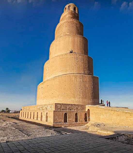 The Great Mosque of Samarra was, for a time, the largest mosque in the world; its minaret, the Malwiya Tower, is a spiralling cone 52 metres (171 ft) high and 33 metres (108 ft) wide with a spiral ramp.