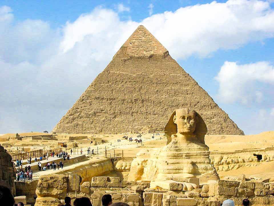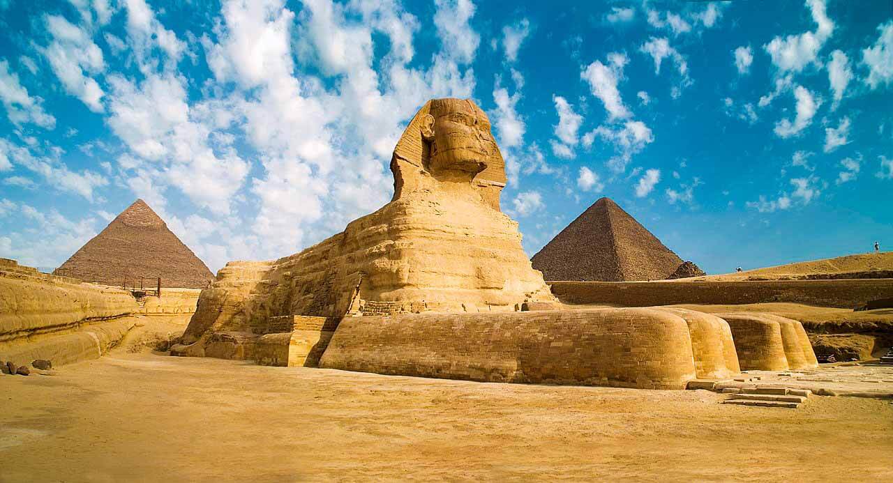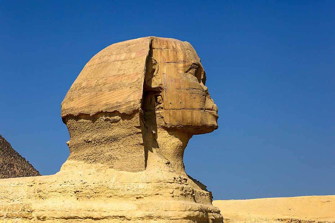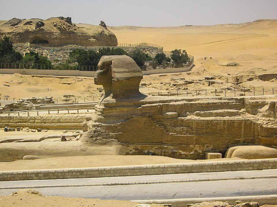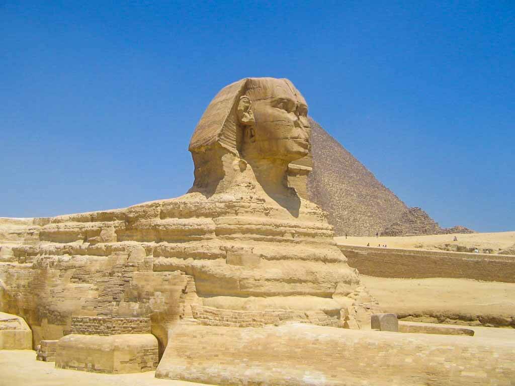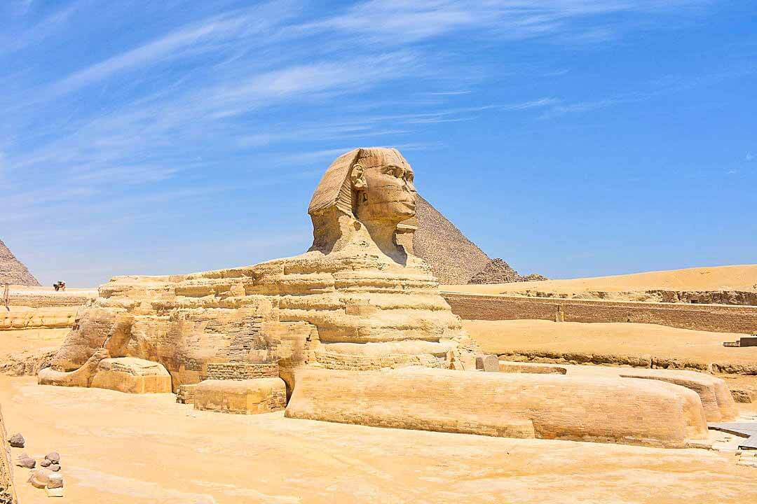 It’s not known exactly how old The Great Sphinx is, who built it, or for what purpose. Despite theories, it’s also not known what happened to the nose. Since this mythological creature with a lion’s body and human head sits in front of Khafre’s Pyramid, it’s generally believed the Sphinx is from the 4th dynasty around 2500 BC.