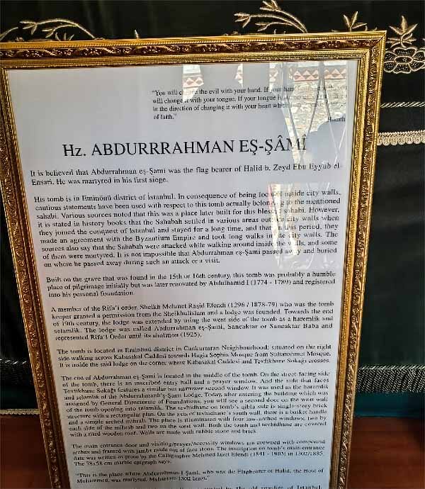 He is Believed, by the locals of Istanbul, to be the companion of Hz. Prophet Muhammad ﷺ