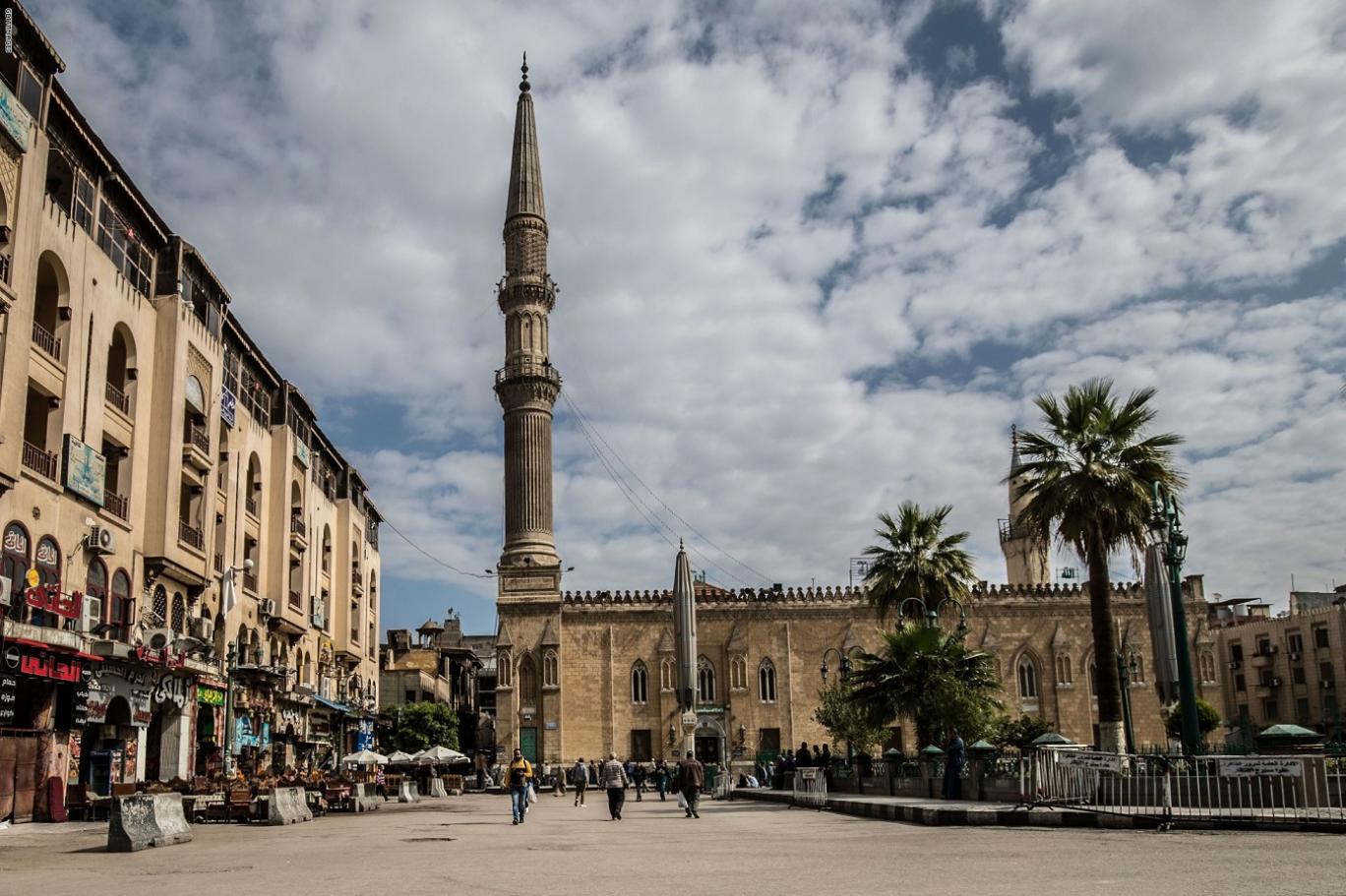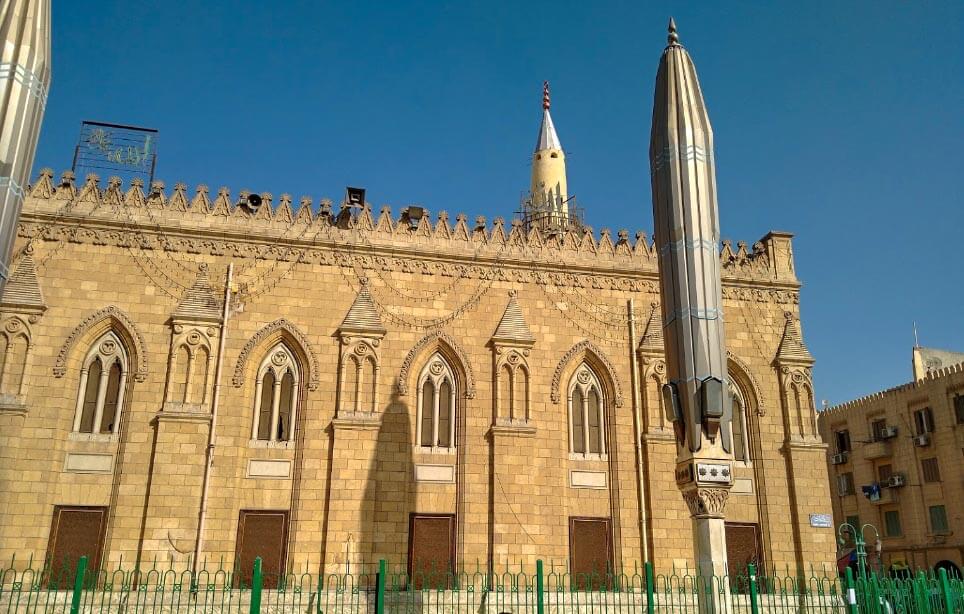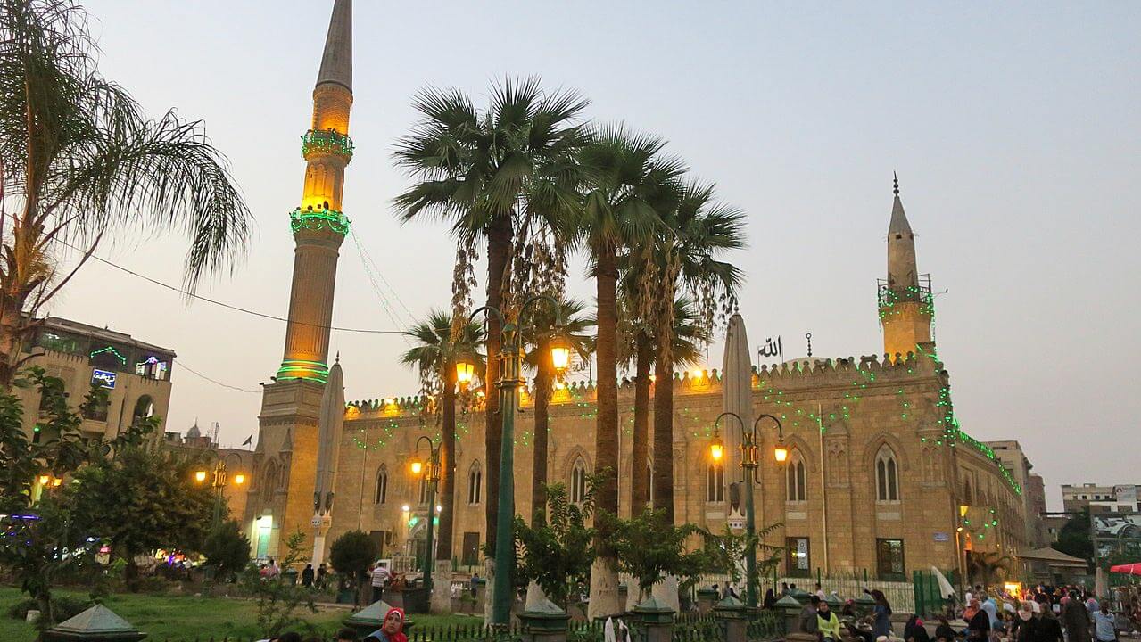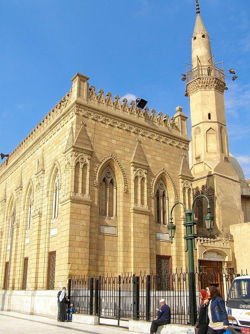 The mosque is located in Cairo, Egypt, near the Khan El-Khalili bazaar, near-by the famous Al Azhar Mosque, in an area known as Al-Hussain.