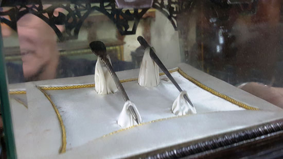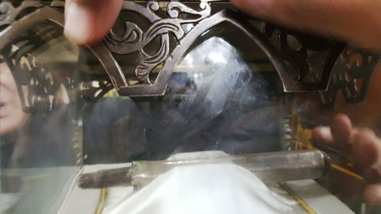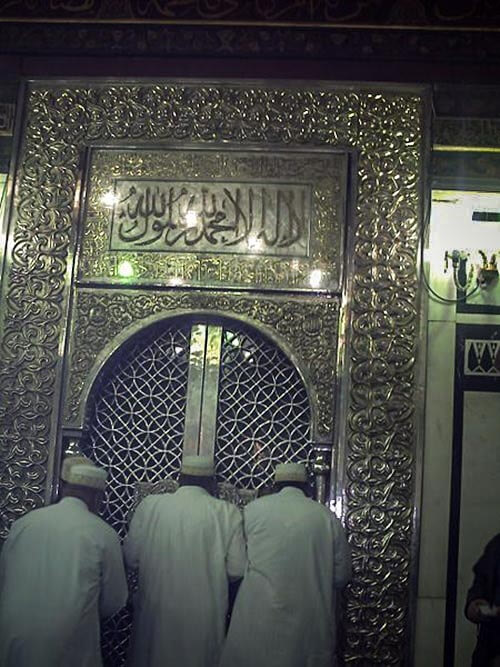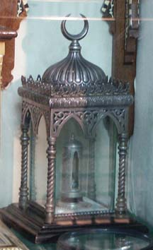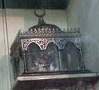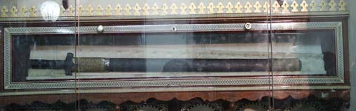 At the gate of the chamber the relics of the beloved chosen Prophet ﷺ are found. Here you will be blessed by seeing his sword, parts of his shirt and his stick by which he pointed to the idols and they were destructed. Furthermore, You will see his [kohl] stick, [kohl] container and four hairs from his blessed head ﷺ.