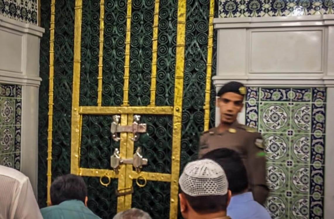 Marks the place behind where the house of Hz. Ali عليه اسلام and Bibi Fatima رضي الله عنها was located