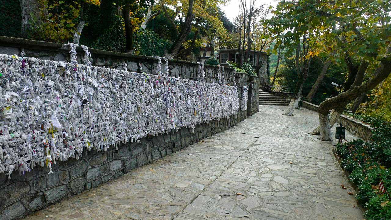 Outside the shrine is a particular “wishing wall” which pilgrims have used by tying their personal intentions on paper or fabric.