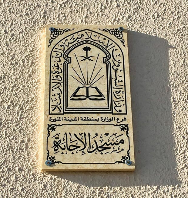 Al-Ijabah Mosque also known as Bani Muawiyah Mosque or Al-Mubahalah Mosque is a mosque in Medinah sharif, Saudi Arabia, which was built during the time of Hz. Prophet Muhammad ﷺ on a land owned by Hz. Muawiyah bin Malik bin ‘Auf رضي الله عنه of Al-Aus tribe.
