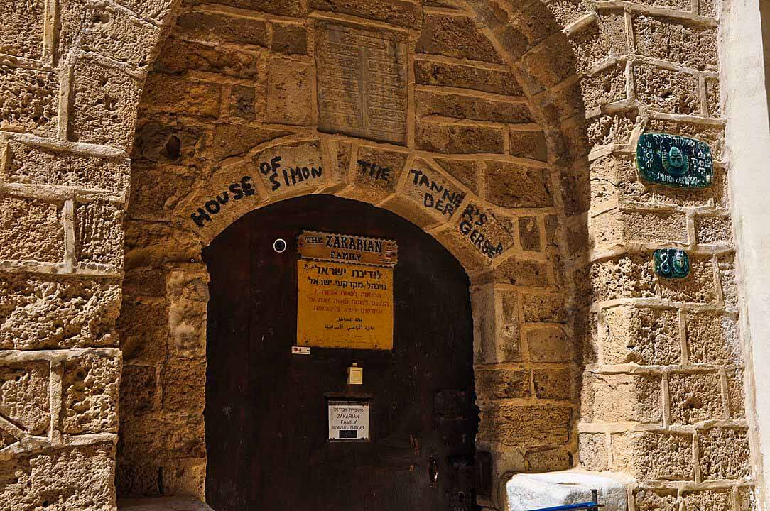 In the Old City of Jaffa, there is the traditional house of Simon the Tanner. The house is privately owned and cannot be visited, but its entrance door and location attracts many Christian pilgrims and tourists.