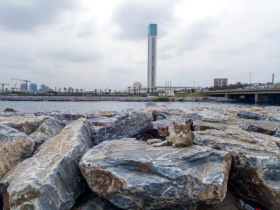 The mosque sits on a site covering 400,000 m2 (4,300,000 sq ft) and overlooking the Mediterranean Sea.