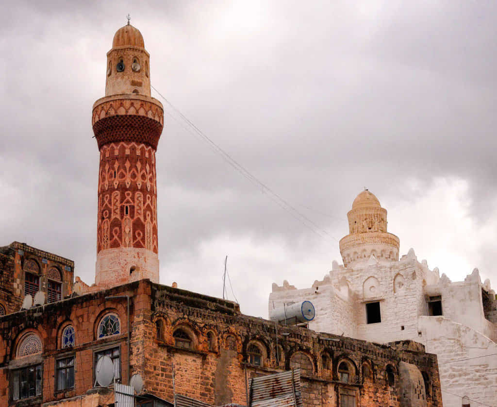 Minarets of Queen Arwa Mosque in 1986