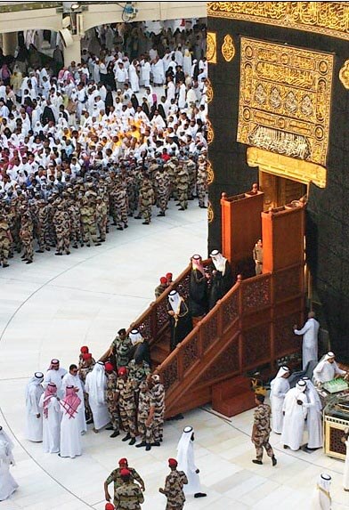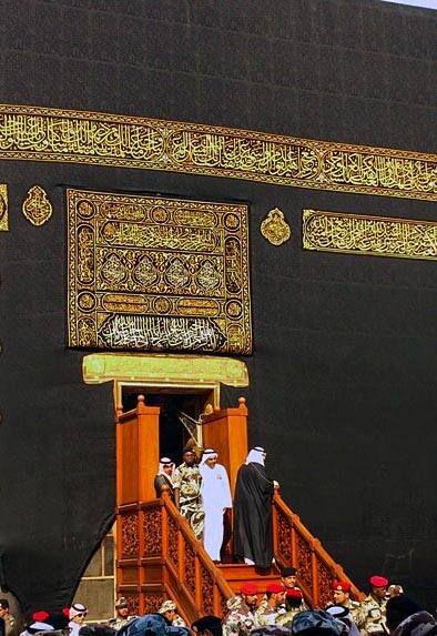 A wooden staircase which is used to enter the Holy shrine situated at the heart of the Masjid al-Haram in Mecca sharif