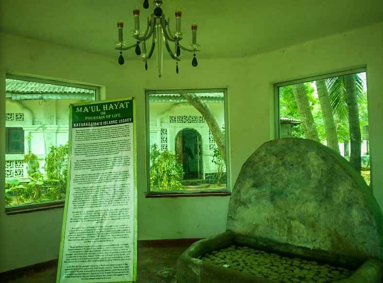 The influence of Hz. Khizr عليه اسلام in the country is also apparent in the writings of Ibn Battuta as far back as his travels where we find him mentioning the cave of Hz. Khizr عليه اسلام where the pilgrims to Adam’s Peak left their belongings before ascending to its summit. He even mentions a spring also called after Hz. Khizr عليه اسلام and full of fish which no one catches.