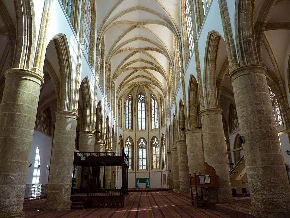 The largest former church in Famagusta, The Turks added a sleek minaret, and kept the interior empty and white, doing a great service to its sleek ogival arches and columns