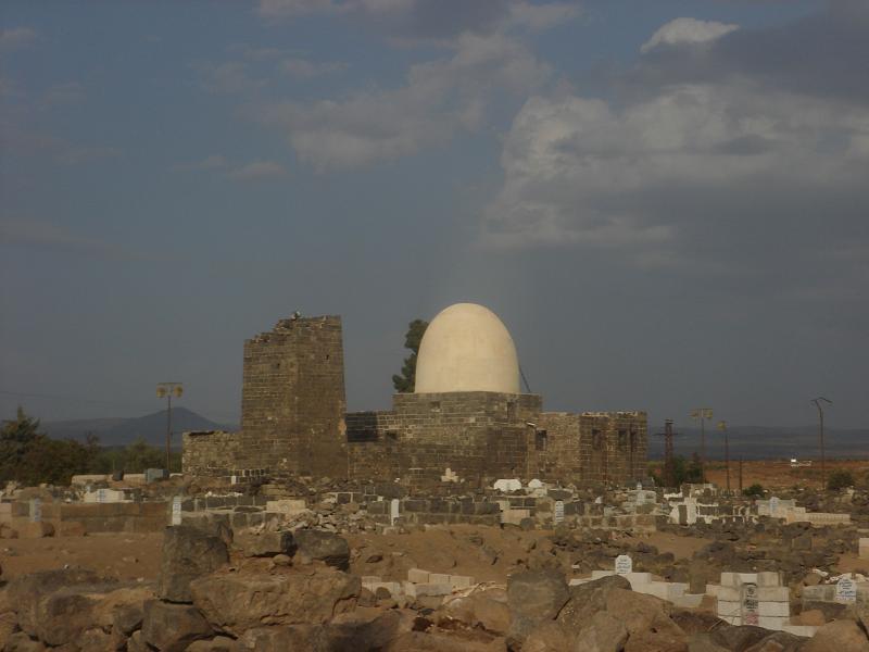It is situated in Bosra, near the monastery of Bahira the Monk.