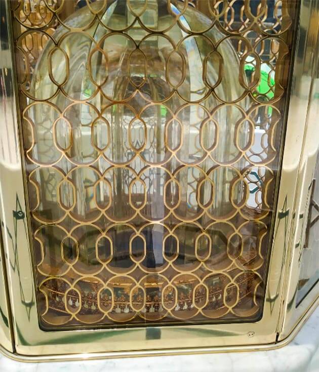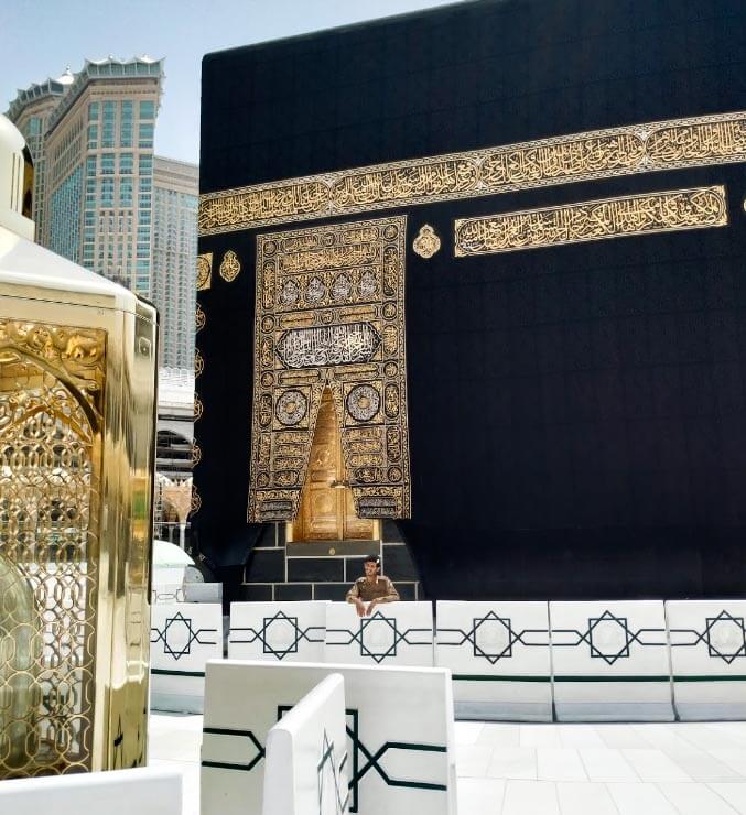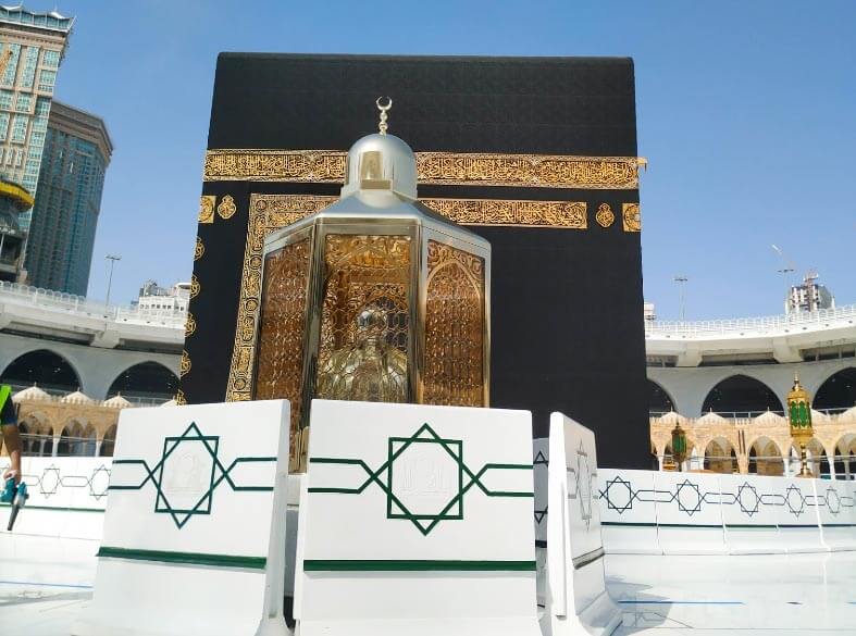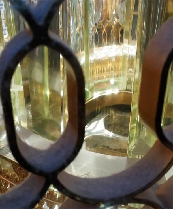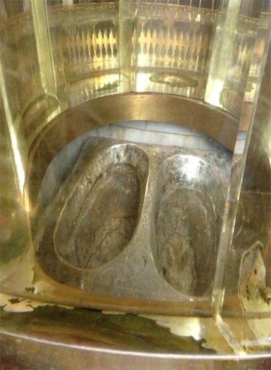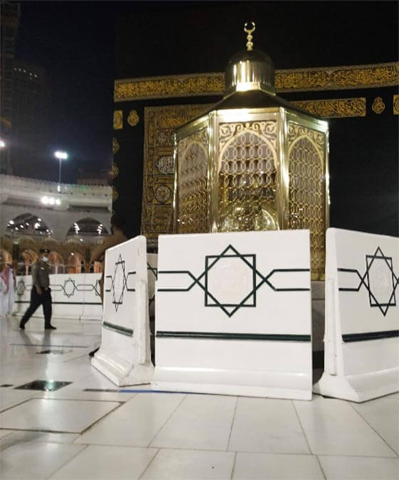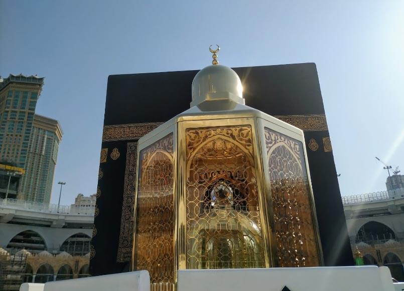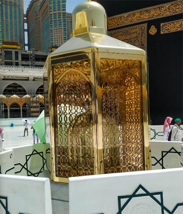 A stepping stone used by Prophet Ibrahim عليه اسلام during the original construction of the Ka`bah. The stone carries the imprints of his feet and is housed in a glass enclosure on the north side of the Ka`bah