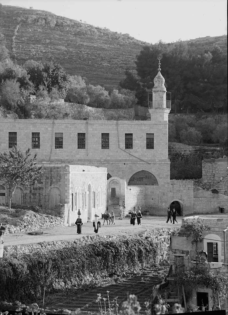 The former Arab inhabitants built a mosque and school on the site, of which a Maqam (shrine) and minaret still remain. An inscribed panel to the courtyard of the mosque dates it to 1828-1829 CE (1244 H.)