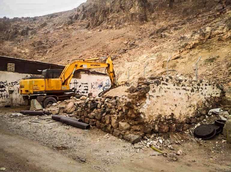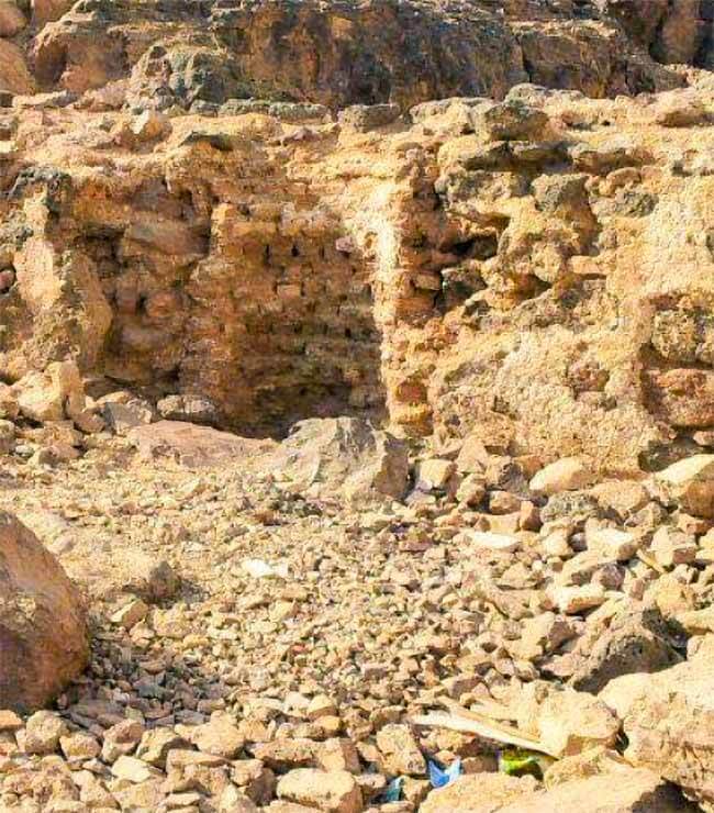 The construction is already destroyed and there are only few remnants of the east, west and south wall, and the mehrab mujawwaf which is still visible.
