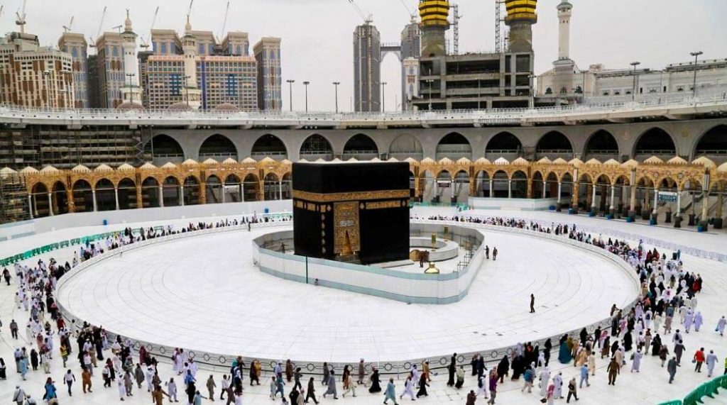 It refers to the open white area immediately around the Ka’bah where tawaf takes place