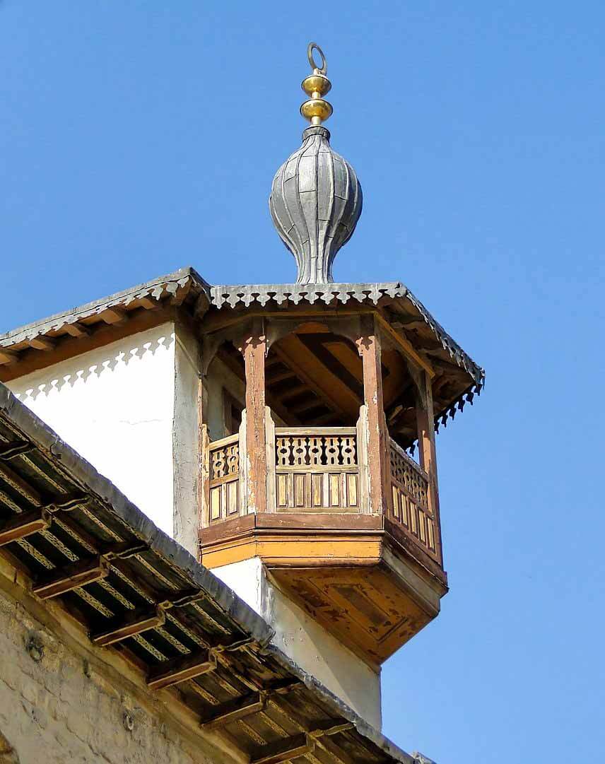The Minaret of the Bride is divided into two sections; the main tower and the spire which are separated by a lead roof.