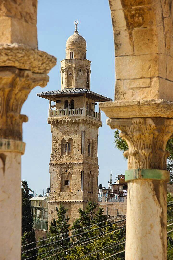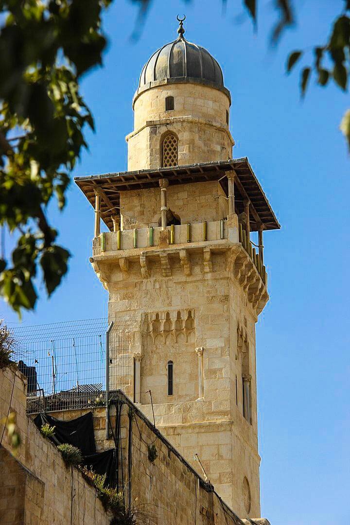 The minaret was built on the solid part of the wall. The minaret was rebuilt during the Ottoman period in 1920. After the minaret was damaged in the Jerusalem earthquake, the Minaret’s dome was covered with lead.