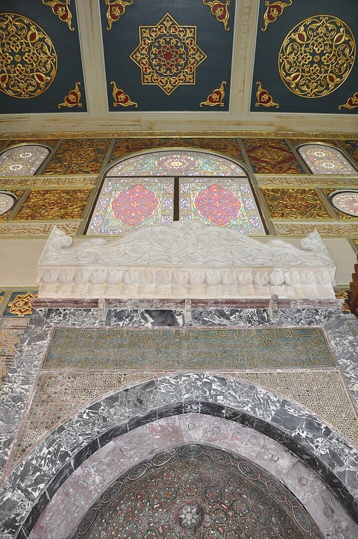 The pulpit is made of cedar wood which is decorated with ivory and sea shells.