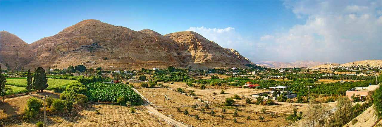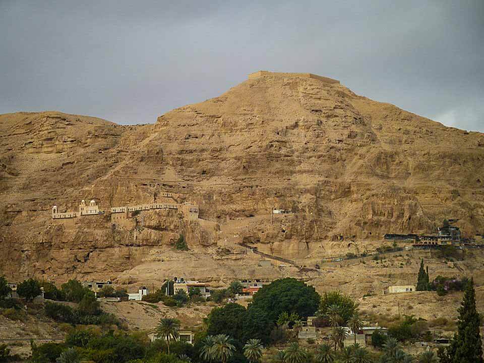 The summit of the mount, about 360 metres above sea level, offers a spectacular panoramic view of the Jordan Valley.