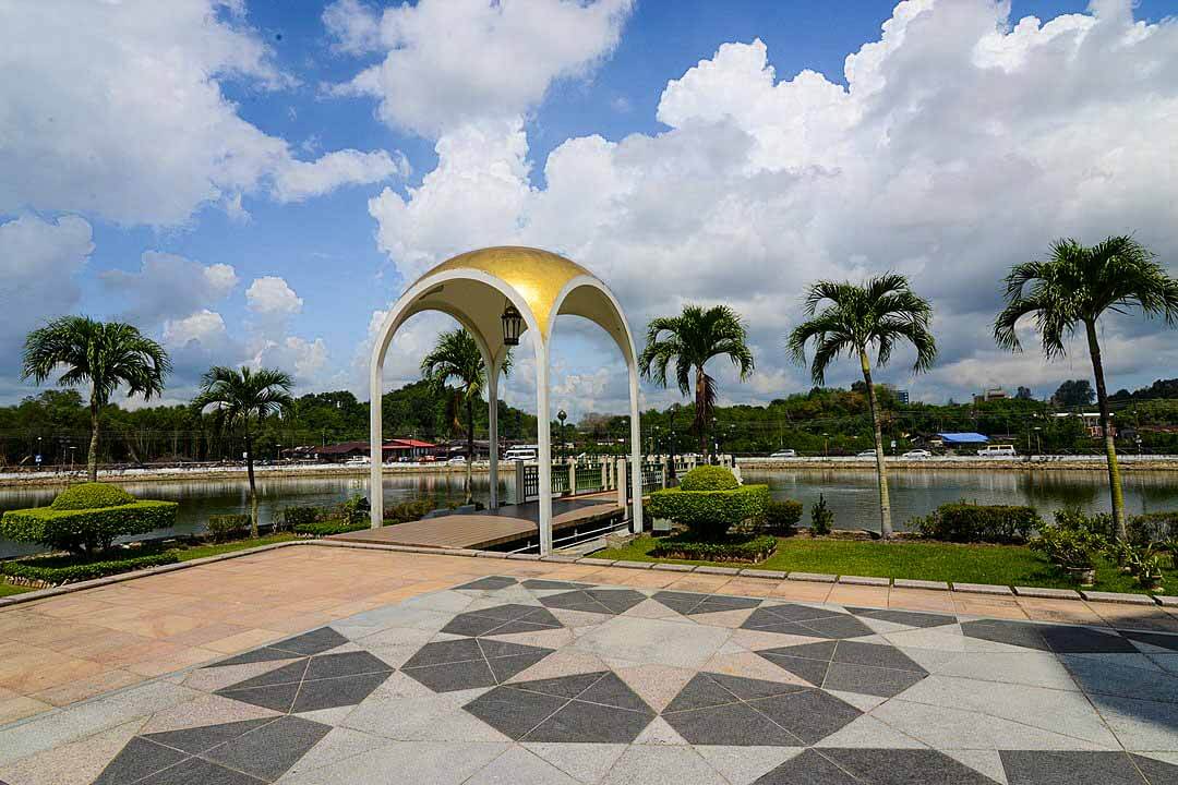 A bridge reaches across the lagoon to Kampong Ayer in the middle of the river.