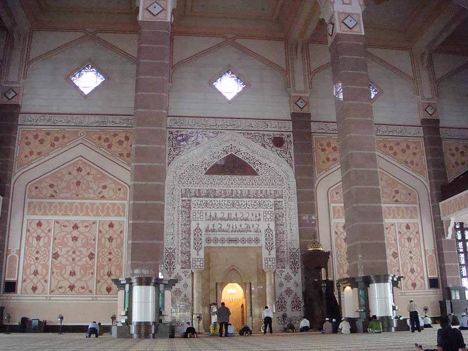The pink-domed Putra Mosque is constructed with rose-tinted granite and consists of three main functional areas – the prayer hall, the Sahn, or courtyard, and various learning facilities and function rooms.