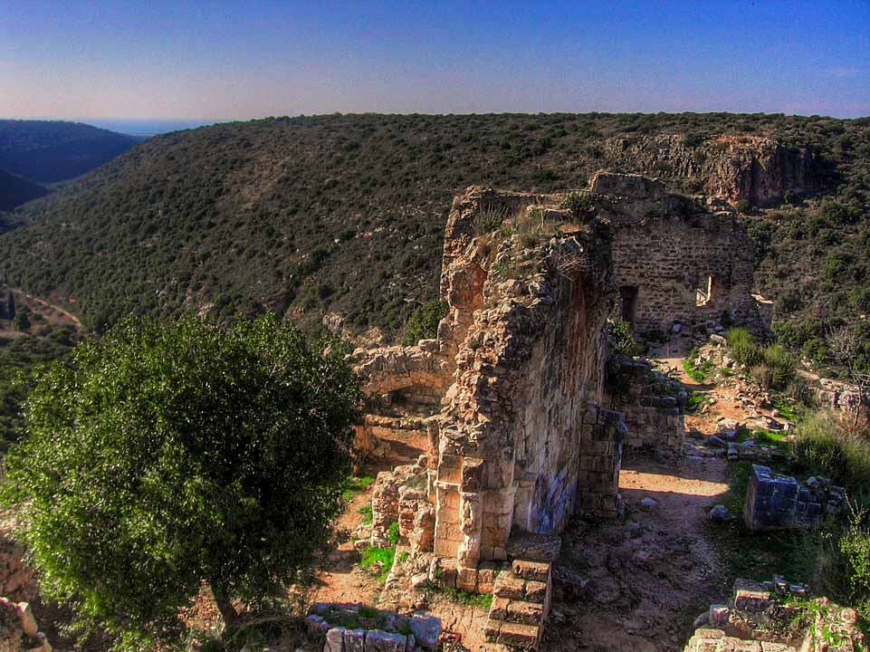 Qal’at al-Qurain or Qal’at al-Qarn – (“Castle of the Little Horn” or “Castle of the Horn”) and also knows as Montfort Castle, is a ruined Crusader castle in the Upper Galilee region in northern Israel, about 22 miles (35 km) northeast of the city of Haifa and 10 miles (16 km) south of the border with Lebanon.
