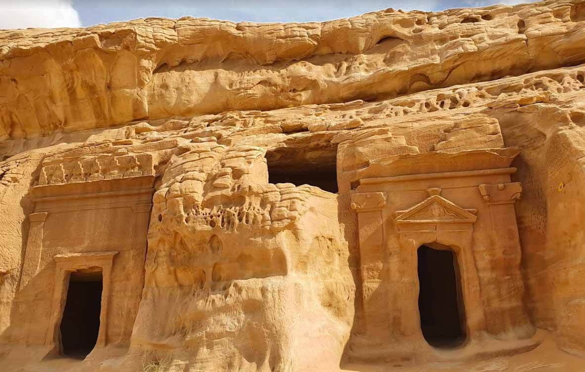 Tombs are concentrated in a single group carved around an individual outcrop or rock, as recorded by explorers and travellers to Al-Ula in the late 19th and early 20th centuries.