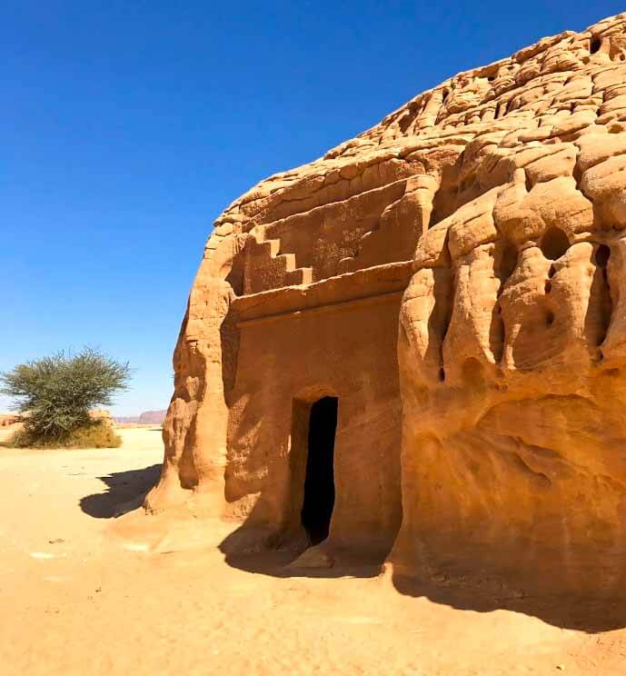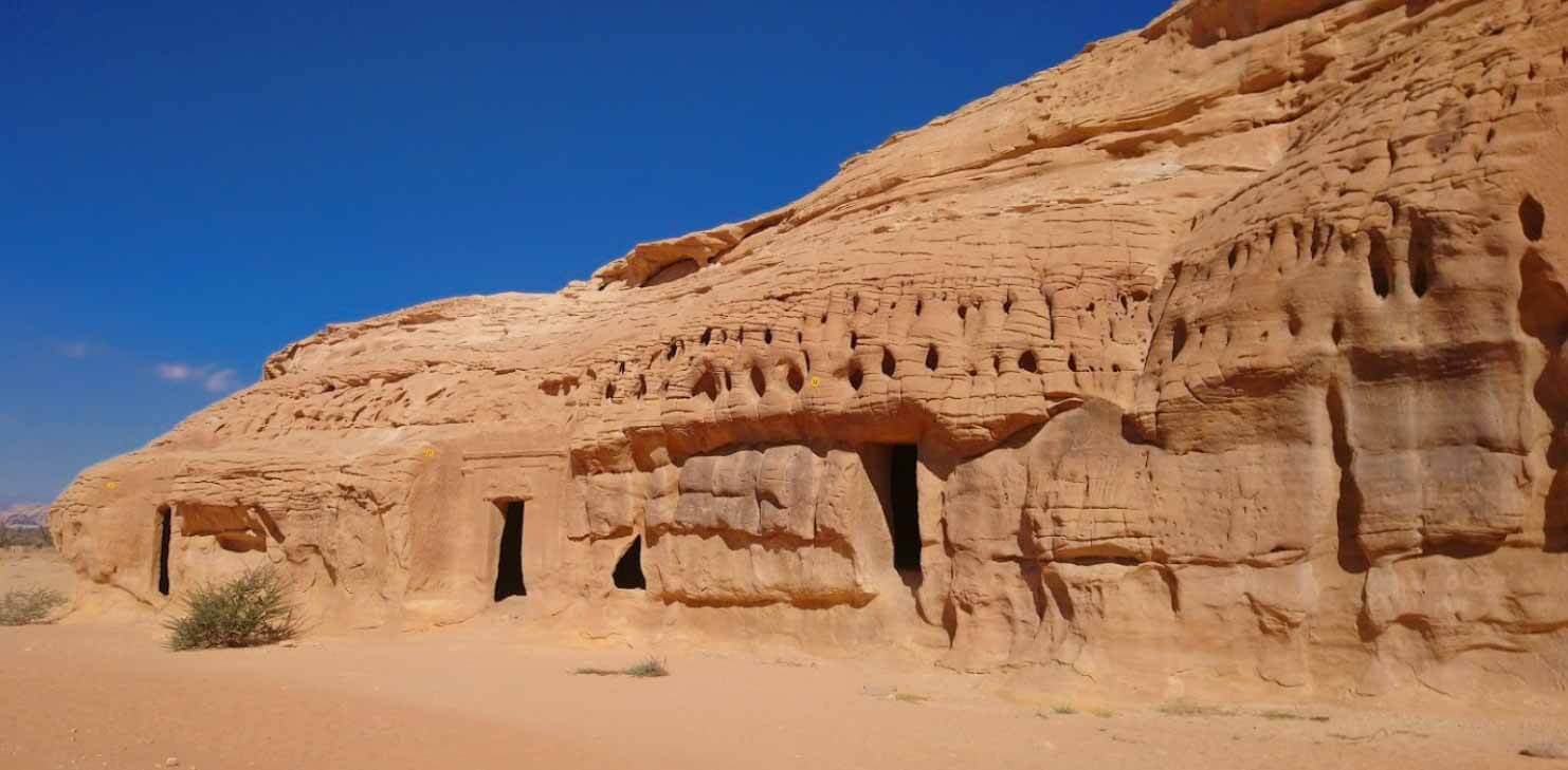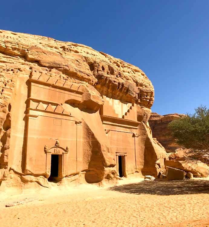 Its 31 tombs are neither the largest nor the most decorated ones but they form, as a whole, the most conspicuous and most representative group at Madain Salih.