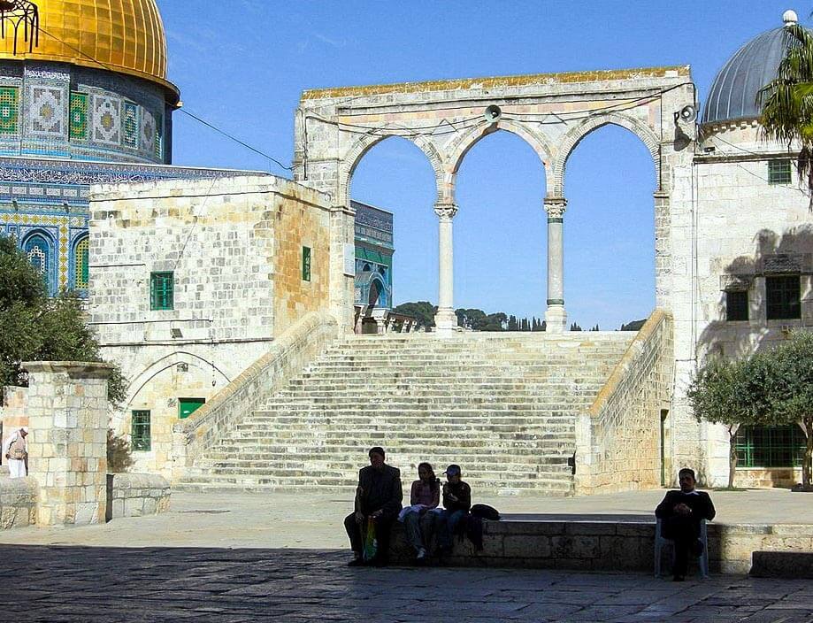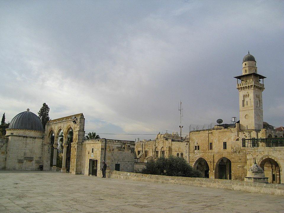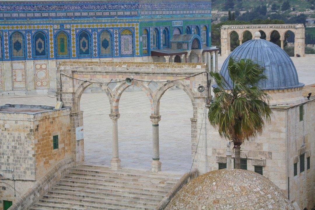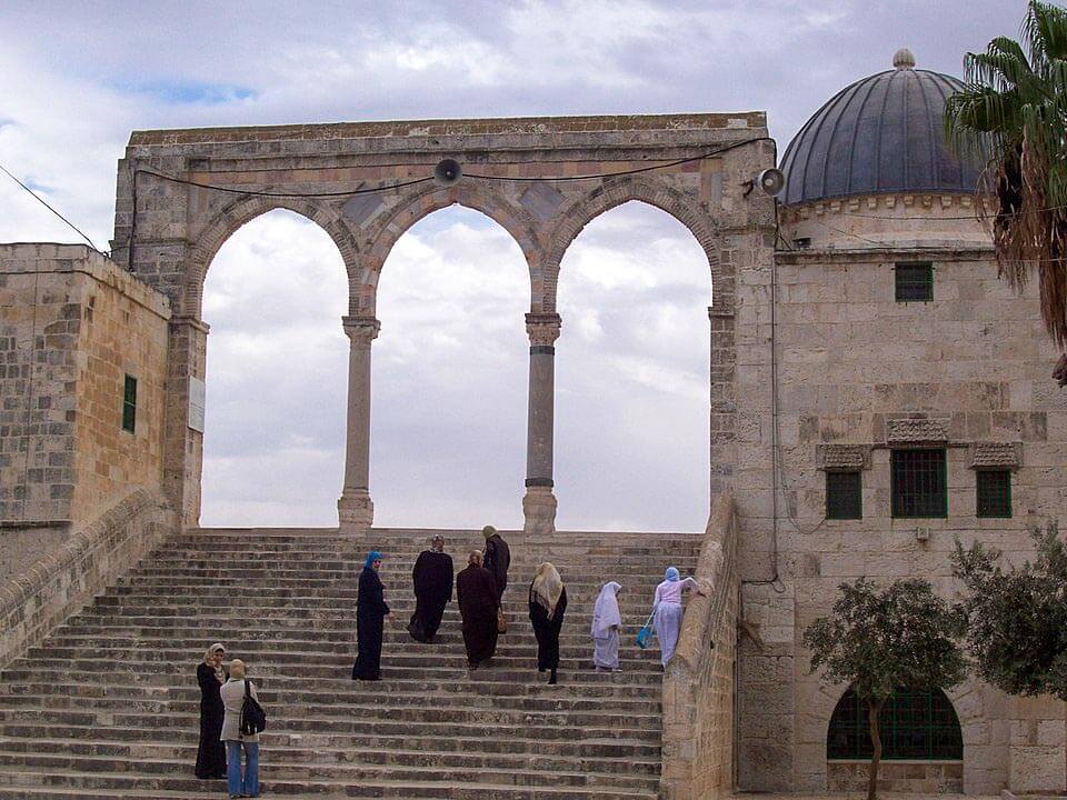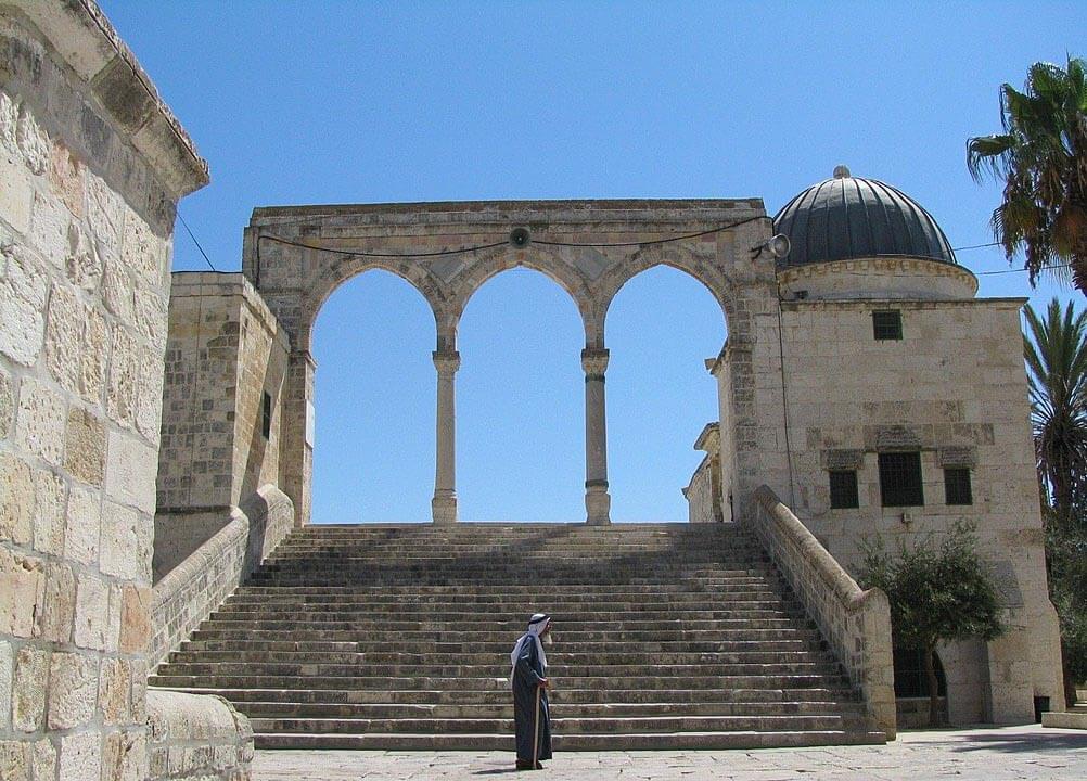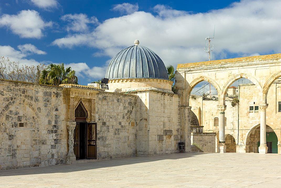 This part of the building is roofed with a dome, which is coated in lead and contains three openings. The eastern room is also square in plan and opens onto the Haram terrace through a door on the north side of the room.
